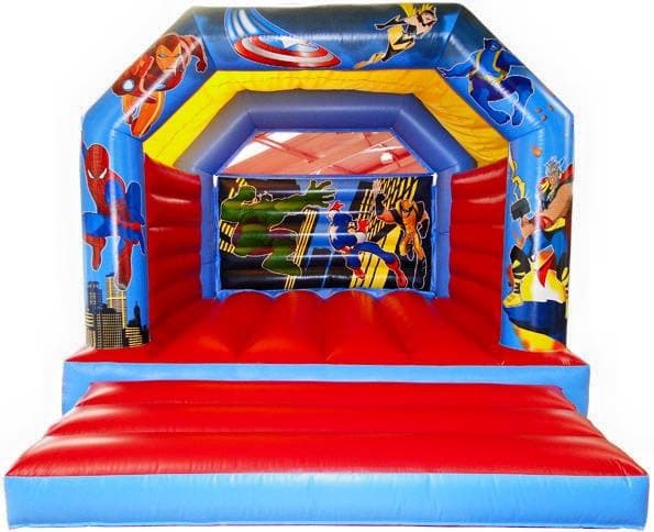 Leap into action with our Superhero Bouncy Castle! This bouncy castles is where stunning artwork brings to life the most beloved comic book heroes. A must-have for any child's party, our superhero inflatable is adorned with the likenesses of Ironman, Spiderman, Thor, Captain America, Wolverine, Hulk, and many more.