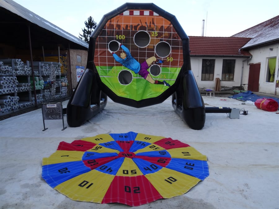 Our inflatable dartboard is not just any game—it's a double-sided marvel of fun! One side features a Velcro dartboard where players kick Velcro-covered footballs to hit the bullseye, while the other side hosts a shootout area for that perfect goal-scoring practice. With three footballs provided for endless play, and the option to use regular footballs, the excitement never stops.