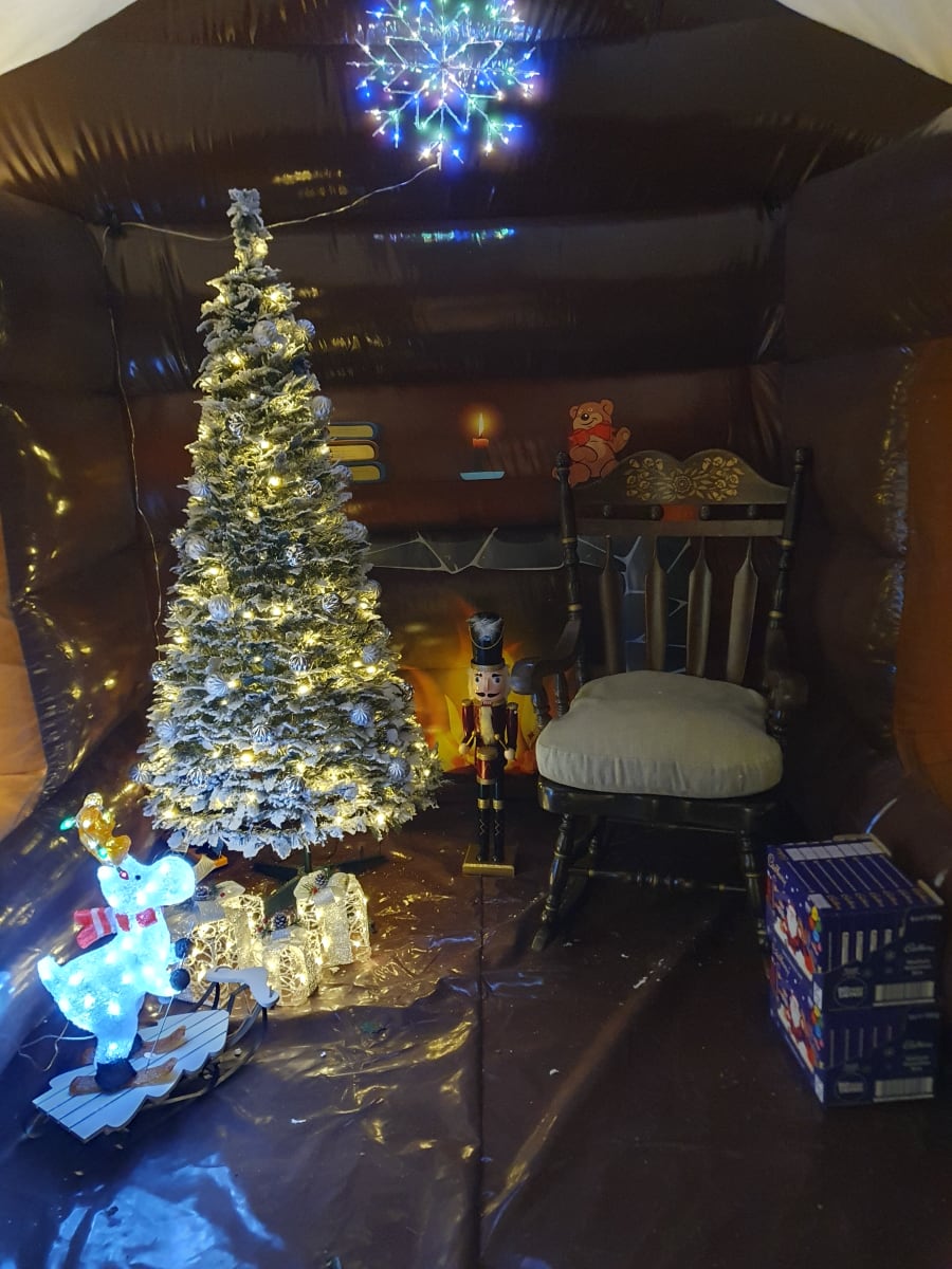 Santa’s Deluxe Grotto Winter Wonderland Special – a 12ft x 12ft grotto with festive décor, twinkling lights, and a cosy setting for Santa visits or photo opportunities.