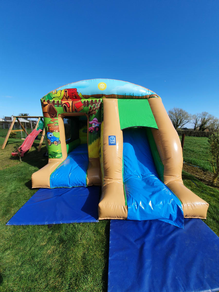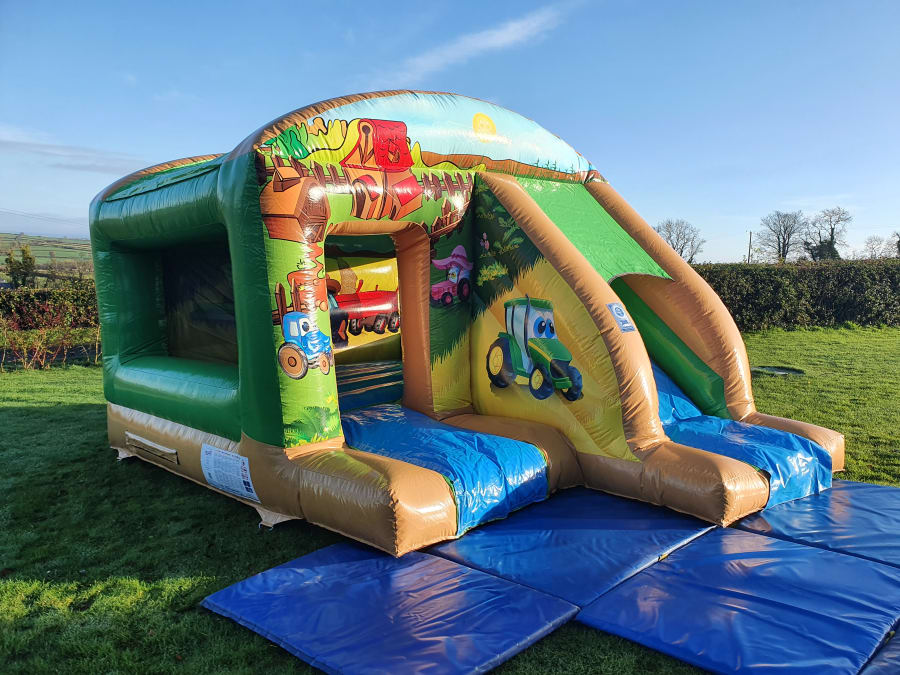 • The 18ft x 13ft Tractor Themed Box Jump & Slide combines the joy of bouncing with the excitement of sliding, all wrapped up in a farm-friendly package that kids adore.